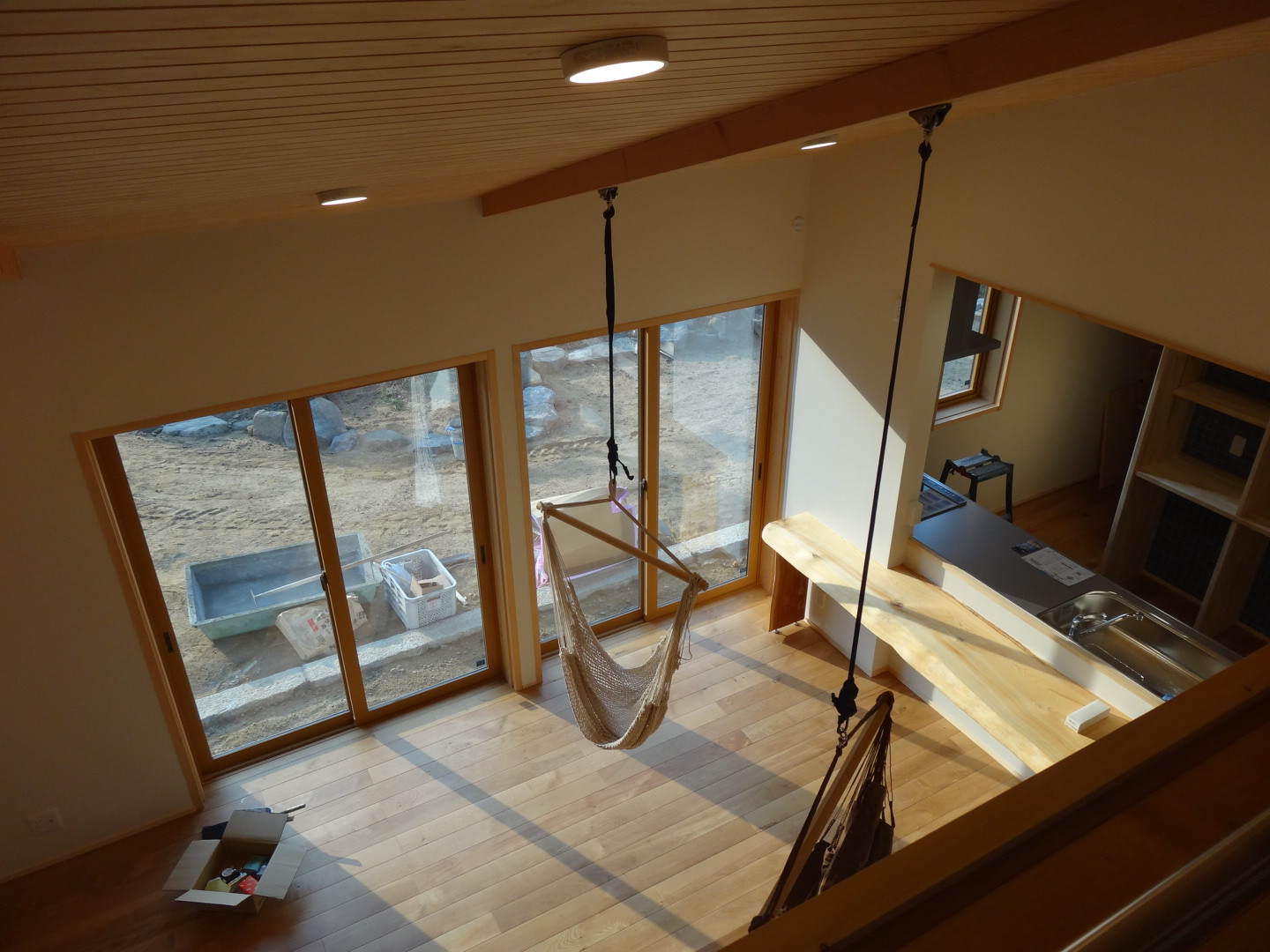 同じく伯方島で建てた新築平屋住宅のリビングです。